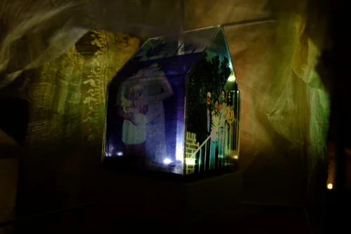 My thesis is about the inheritance of memories and experience and how they are appropriated. The work aims to explore nostalgia, postmemory and the romanticism of the family through an installation of several simplified forms of a house made with fabric, embroideries and family photographs. The fabric is sourced from formal clothing such as barongs and dresses donated by relatives. The fabric is then hand embroidered with details of windows, doors, and outlines of family photographs referencing an interpretation of memories that was not experienced.